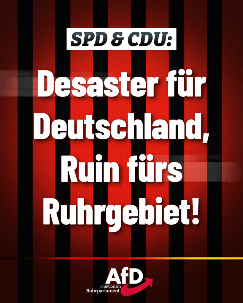 Dieser Koalitionsvertrag ist selbst für die linke CDU Ruhr ein Armutszeugnis. Als AfD-Fraktion im Ruhrparlament werden wir uns diesen ruinösen Plänen mit vernünftiger, konservativer Politik für die Bürger entgegenstellen.