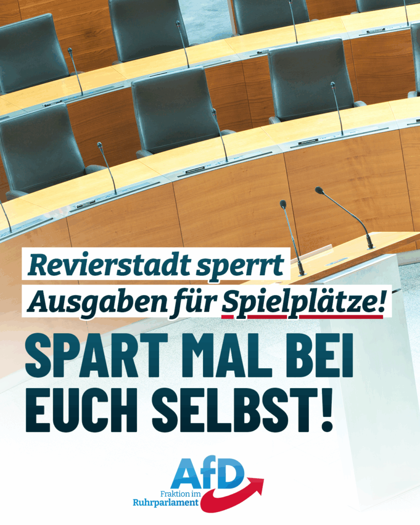 Als AfD-Fraktion im Ruhrparlament stehen wir für verantwortungsvolles Haushalten zum Nutzen der Region. Wir setzen den Rotstift nicht bei Spielplätzen an, sondern bei unnützen Prestigeprojekten, „kultureller Vielfalt“ und dem völlig aufgeblähten Staatsapparat.
